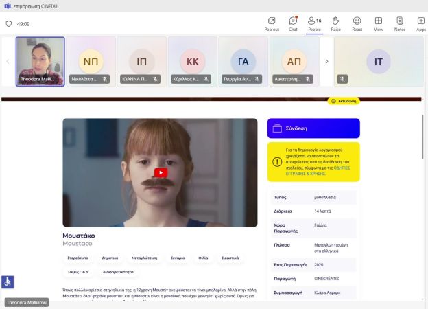 Ενημερωτική συνάντηση για την Ψηφιακή Πλατφόρμα Κινηματογραφικών Ταινιών για τα Σχολεία CINEDU